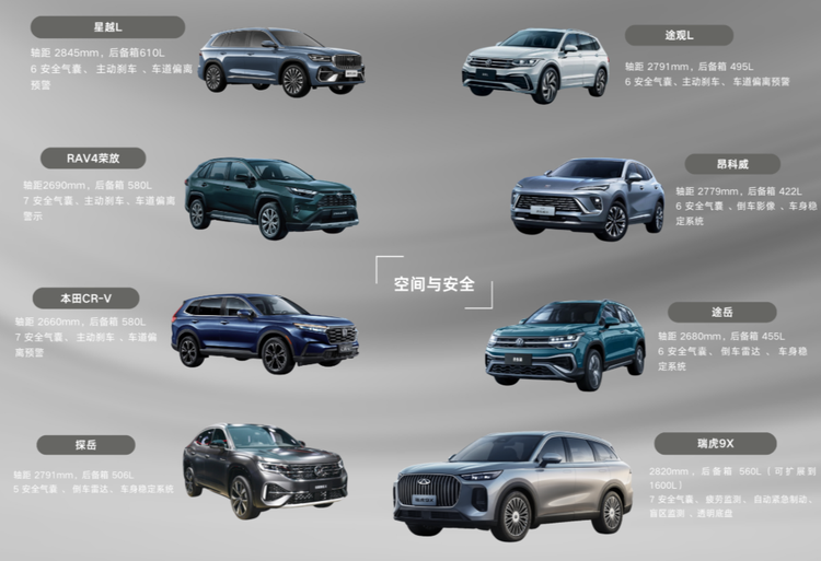 在15-20万的SUV市场,向来是各大车企的“修罗场”。这个价位区间集结了 大众途岳(参数|询价)、途观L、探岳组成的“德系军团”,本田CR-V、丰田RAV4荣放坚守的“日系阵地”,以及别克昂科威代表的美系豪华。与此同时,吉利星越L与奇瑞瑞虎9X作为自主品牌的旗舰代表,正以“降维打击”的态势重塑市场格局。对于消费者而言,面对这8款性格迥异的热门车型,究竟是为合资品牌的“车标”买单,还是拥抱自主旗舰的“越级体验”?我们不妨剥离品牌滤镜,从动力总成、座舱空间以及智能安全这三个核心维度,来一场客观的硬核拆解。