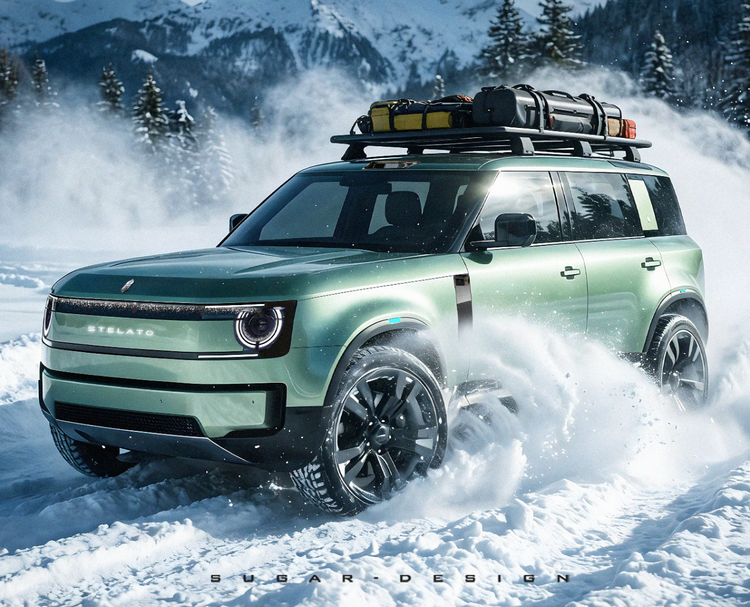 享界全新SUV有可能会是一款硬派造型的“方盒子”SUV,博主@ SugarDesign结合现有线索,绘制了相关车型的预测渲染图,从图中可见整车颇有一股路虎卫士的味道,前脸配备有圆形的大灯和封闭式中网,中网上方是平直的星河璀璨贯穿灯带,分别配备有字母LOGO和图标LOGO。
