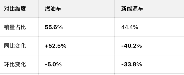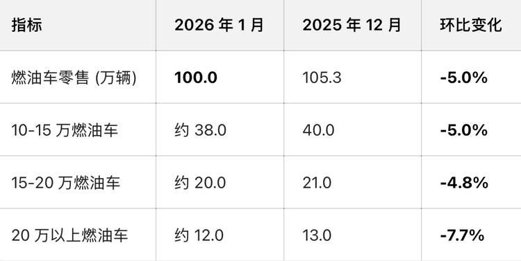 那这么说燃油车反而站起来了,其实并没有,1月销量100.0 万辆,环比还少了5%,只是新能源下滑太猛,显得燃油车“没那么惨”而已,整体市场还是疲软。