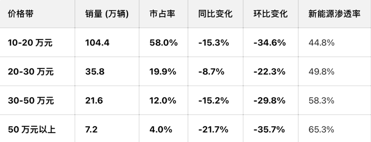 从数据上就能看到,1月份下滑最明显的就是10-20万价格区间的车型,这个价位段可是销量之王,市占率49.93%,同时这个价位段的消费者,对价格是较为敏感的。