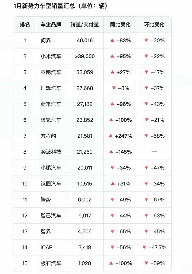 友友们,车企新年第一张成绩单来了,有人销量暴跌近50%,有人却逆势狂涨翻倍,还有人靠卖车到海外对冲国内压力。