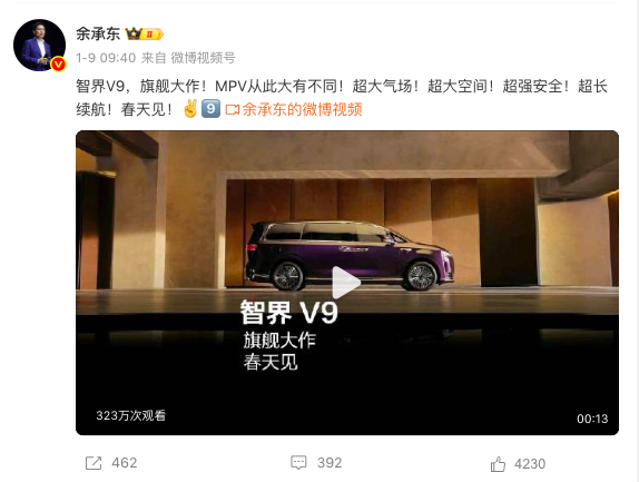 小编有话说:对于这一款50万级MPV,背后的两个重要男人,华为常务董事、产品投资委员会主任、终端 BG 董事长余承东和智界汽车执行董事及执行副总裁赵长江,在微博也多次预热新车,也在互动,也能看出来新车在他们内部的期待值很高。