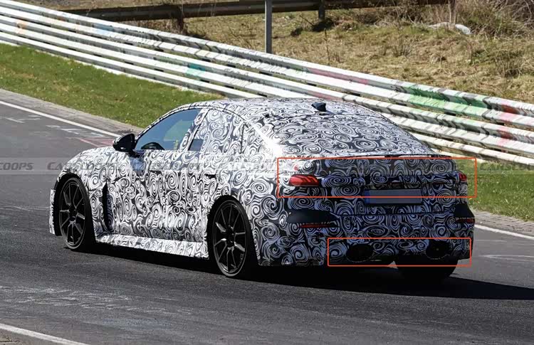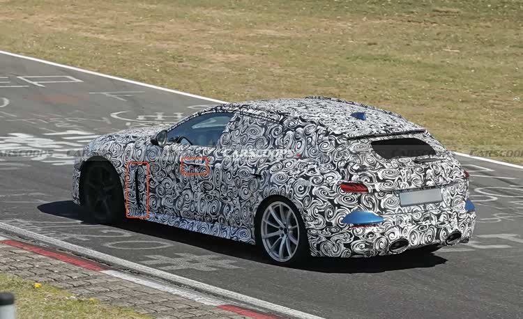 侧面的轮廓预计会延续现款车型的基本风格。RS 5轿车保持着溜背造型,车尾有一个小型的扰流板。RS 5 Avant作为旅行车,车顶线条更为平直,并配备了车顶后方的扰流翼,这自然也为它带来了更实用的后备厢空间。两款车都采用了隐藏式门把手,并配备了前翼子板通风口和更具运动感的侧裙。轮圈的搭配也略有不同,轿车似乎采用了前后一致的款式,而旅行车则使用了前后造型有差异的轮圈。