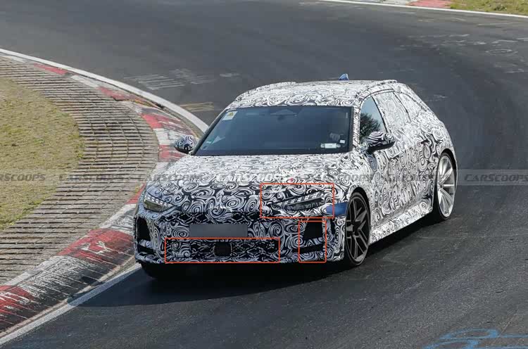 从有限的预告图和已曝光的谍照来看,新一代RS 5和它的Avant旅行版都在前脸设计上做出了明显的调整。大灯的内部结构和前保险杠的样式都经过了重新设计。有趣的是,轿车版RS 5的LED日间行车灯采用了类似“箭羽”的排列,而RS 5 Avant则使用了“点阵式”的设计,这让两款兄弟车型在细节上有了区分。