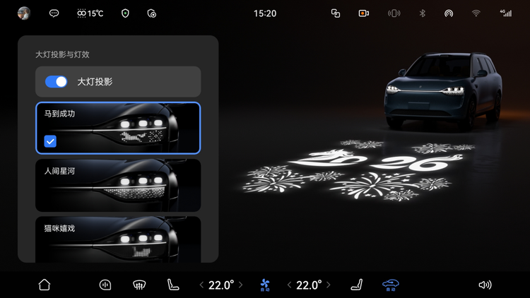 问界M9系列新增“马到成功”迎宾灯效,装配百万像素智慧投影大灯的M9系列车型,可在解锁或锁车时向地面投射绚丽的烟花动画、奔腾的骏马图案及“2026”字样,将新年祝福融入光影科技之中。问界M9系列情景灯语还新增“一路生花”小红花样式及更多城市橱窗图案,彰显独特的光影仪式感。