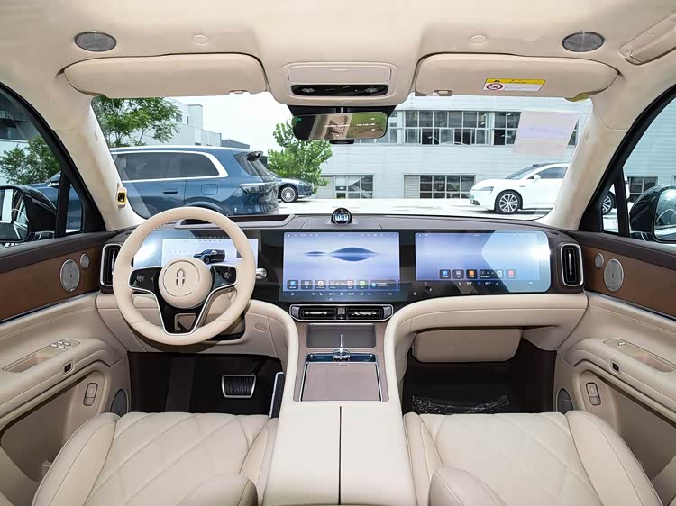 坐进车内,第一感觉是“不浮夸但很贵”。中控台用触控液晶屏代替了大量物理按键,搭配圆润的仪表盘,科技感十足。方向盘是真皮包裹,支持电动调节和加热,冬天开车不冻手。最亮眼的是鸿蒙座舱,支持多屏流转,比如导航信息能从中控屏“甩”到AR-HUD上,开车时不用低头看屏幕;副驾娱乐屏能独立播放视频,和主驾互不干扰。