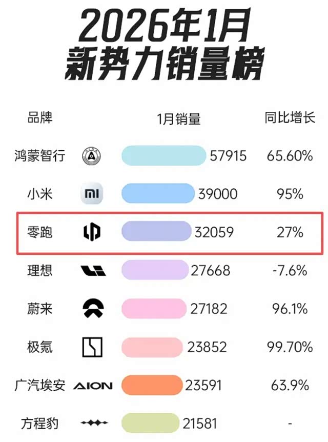 零跑日前宣布,1月份交付32059台,同比增长27%。