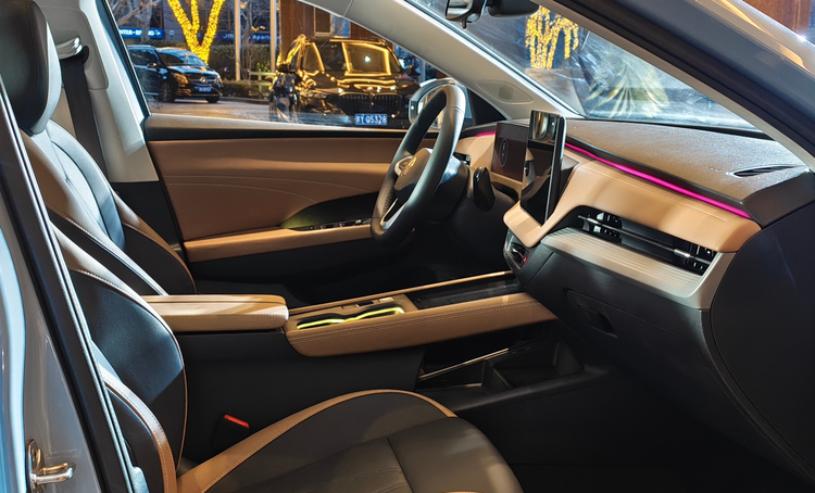 车内的装饰材料和整体氛围都在逐渐提升。软包的覆盖面积有所扩大,同时加入了镀铬装饰和氛围灯,使其不再仅仅是作为代步车使用的氛围。通过怀挡的设计,中控区域得到了释放,而副仪表台的布局也变得更为简洁,高频配置如无线充电杯架电子手刹等都得以实现。