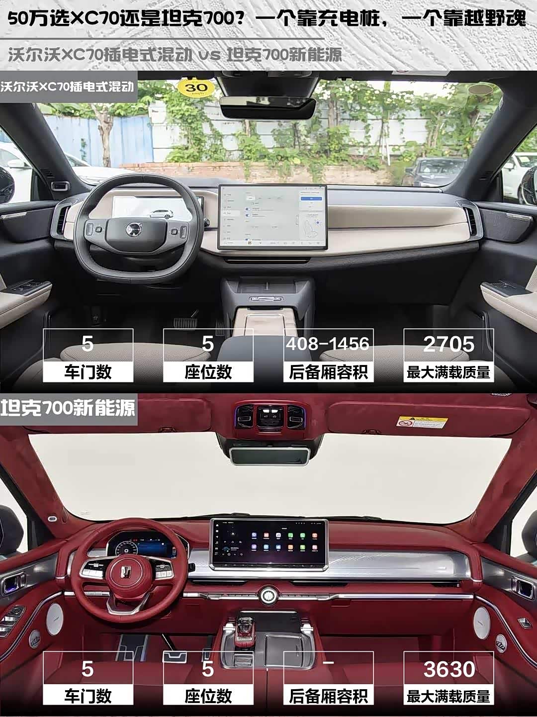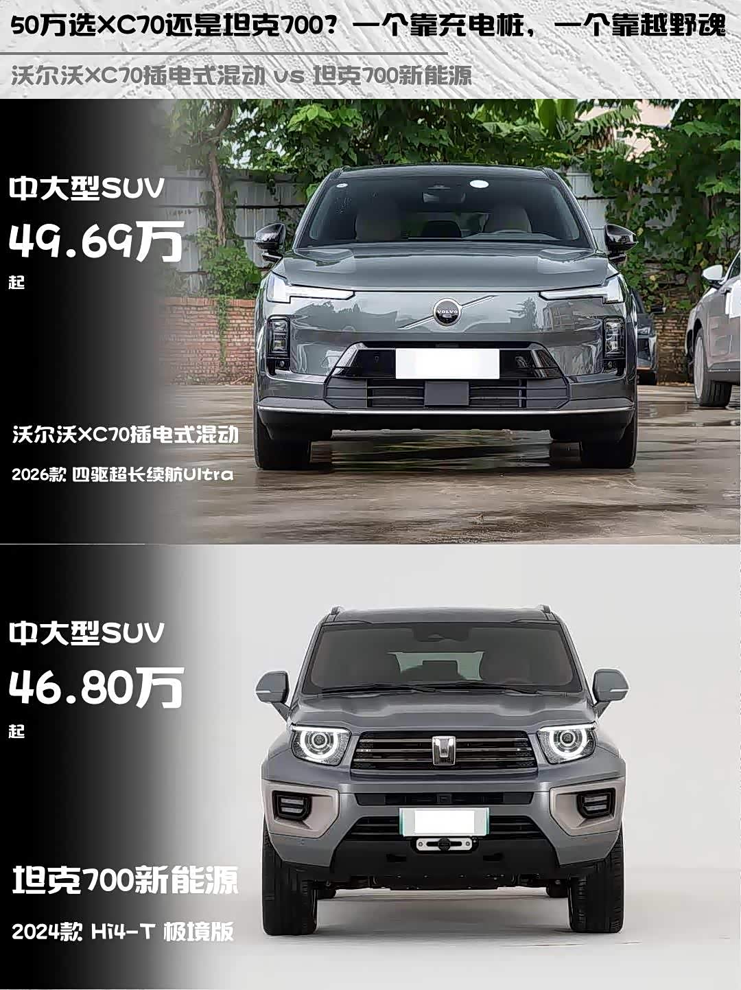 50万选XC70还是坦克700?一个靠充电桩,一个靠越野魂