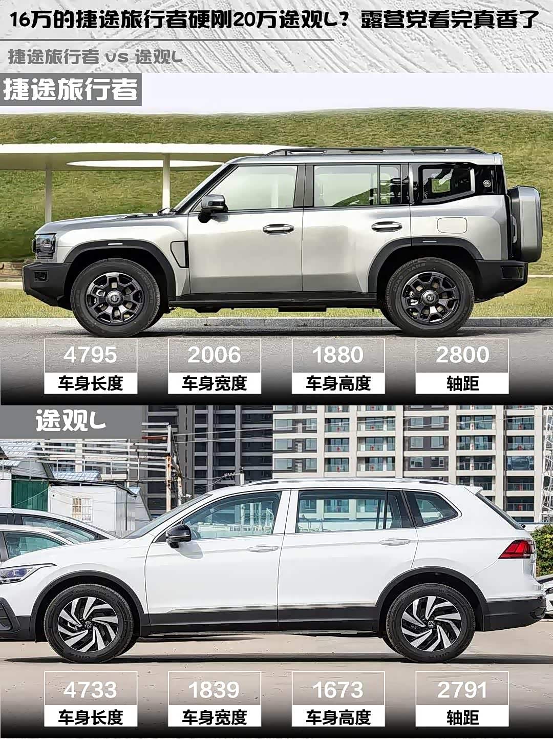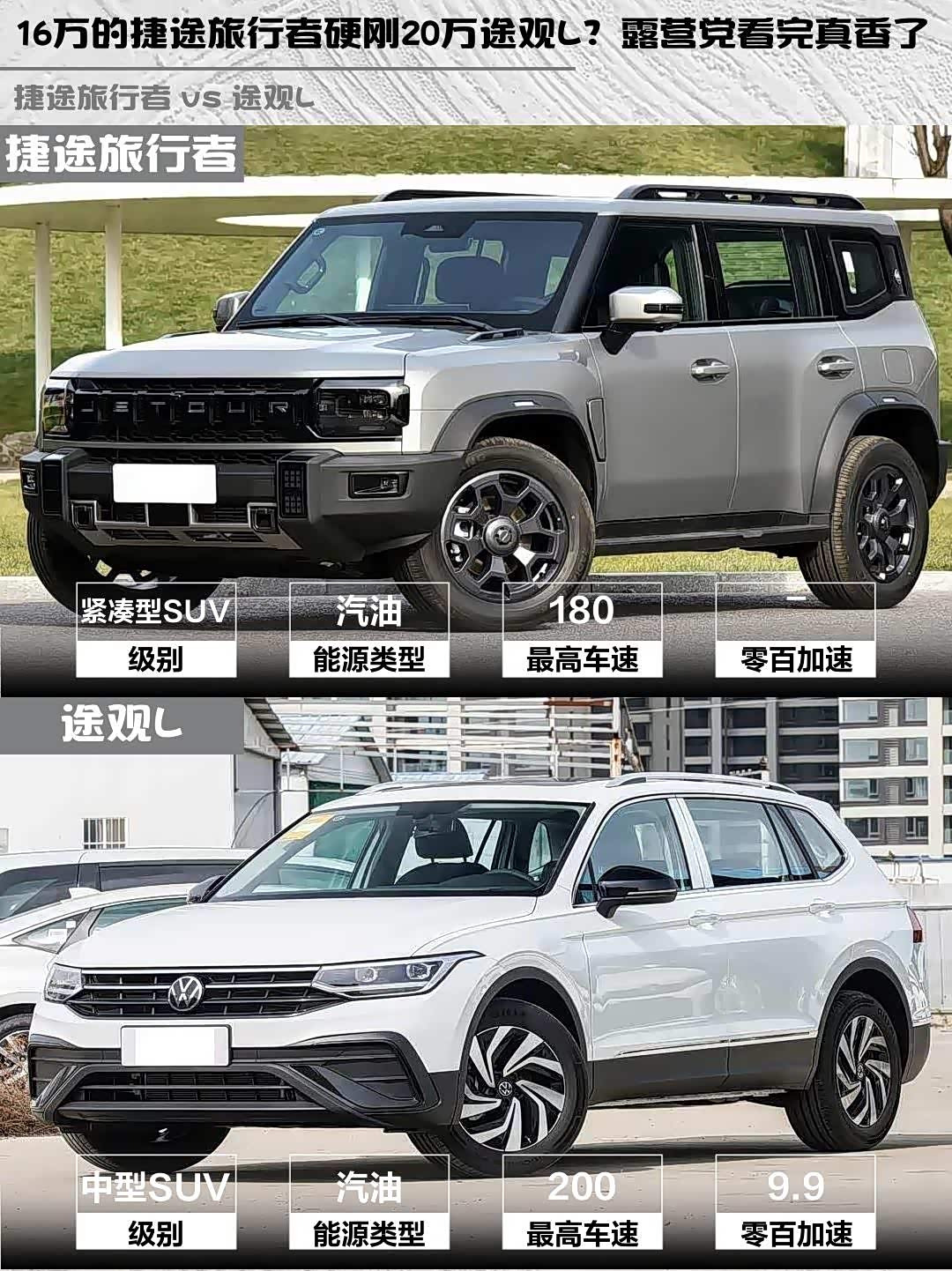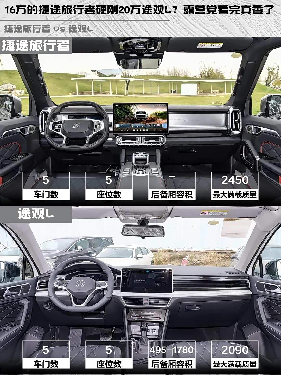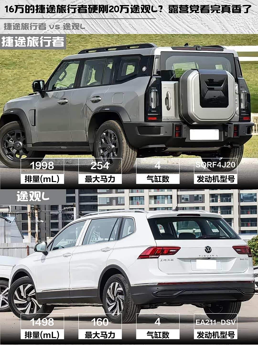 最近在选车的小伙伴看过来!🚗 今天给大家深度对比两款热门SUV—— 捷途旅行者(参数|询价)2026款2.0TD XWD发现版和途观L 2025款出众款300TSI自动两驱龙腾版,看完这篇你就知道哪款更适合你!