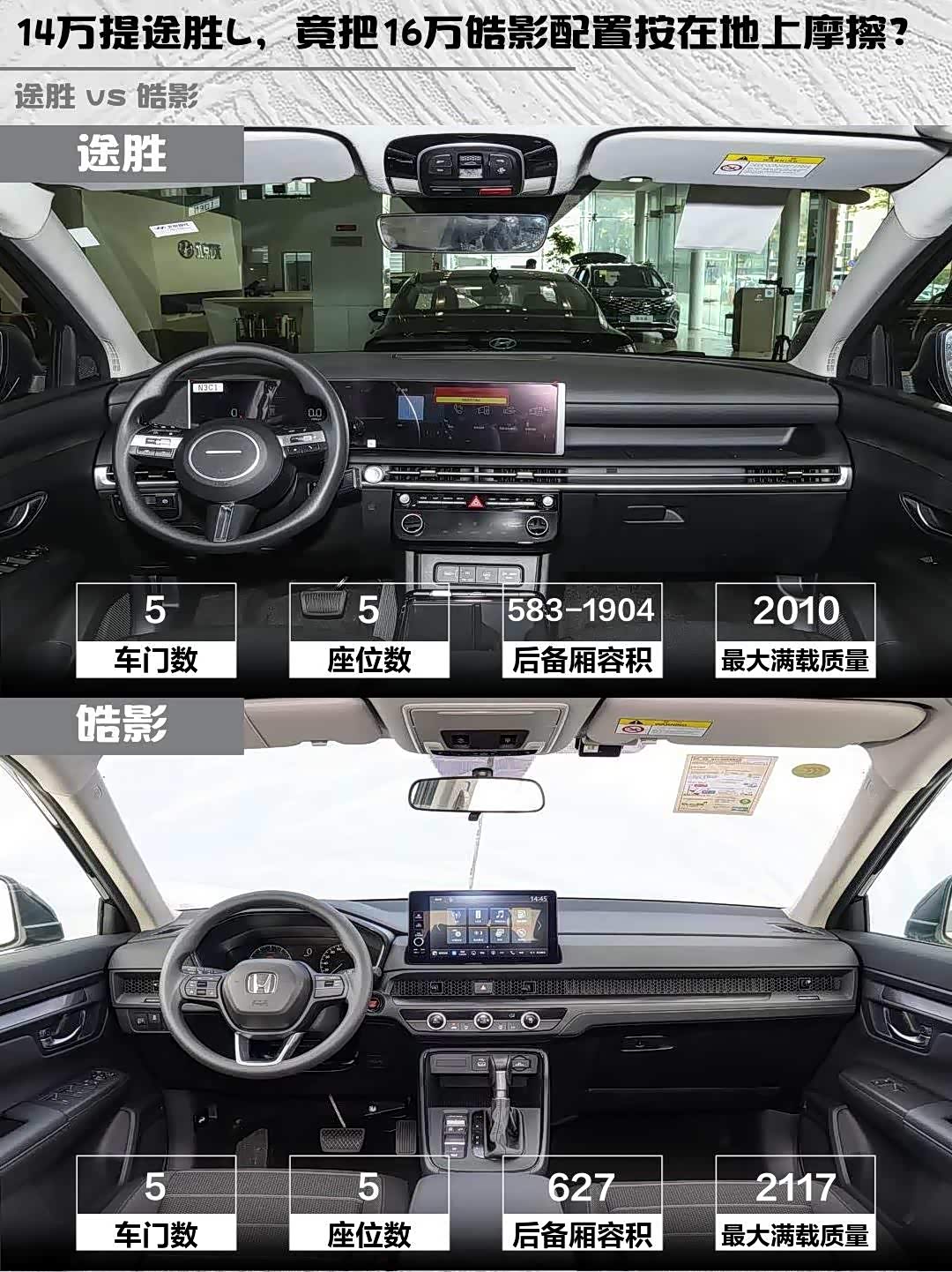 途胜L精英版16.98万,现在终端优惠后14万左右能落地;皓影指导价18.59万,优惠完大概16万。省下2万块够加三年油了!而且途胜L可以选7年质保,比皓影3年更安心。
