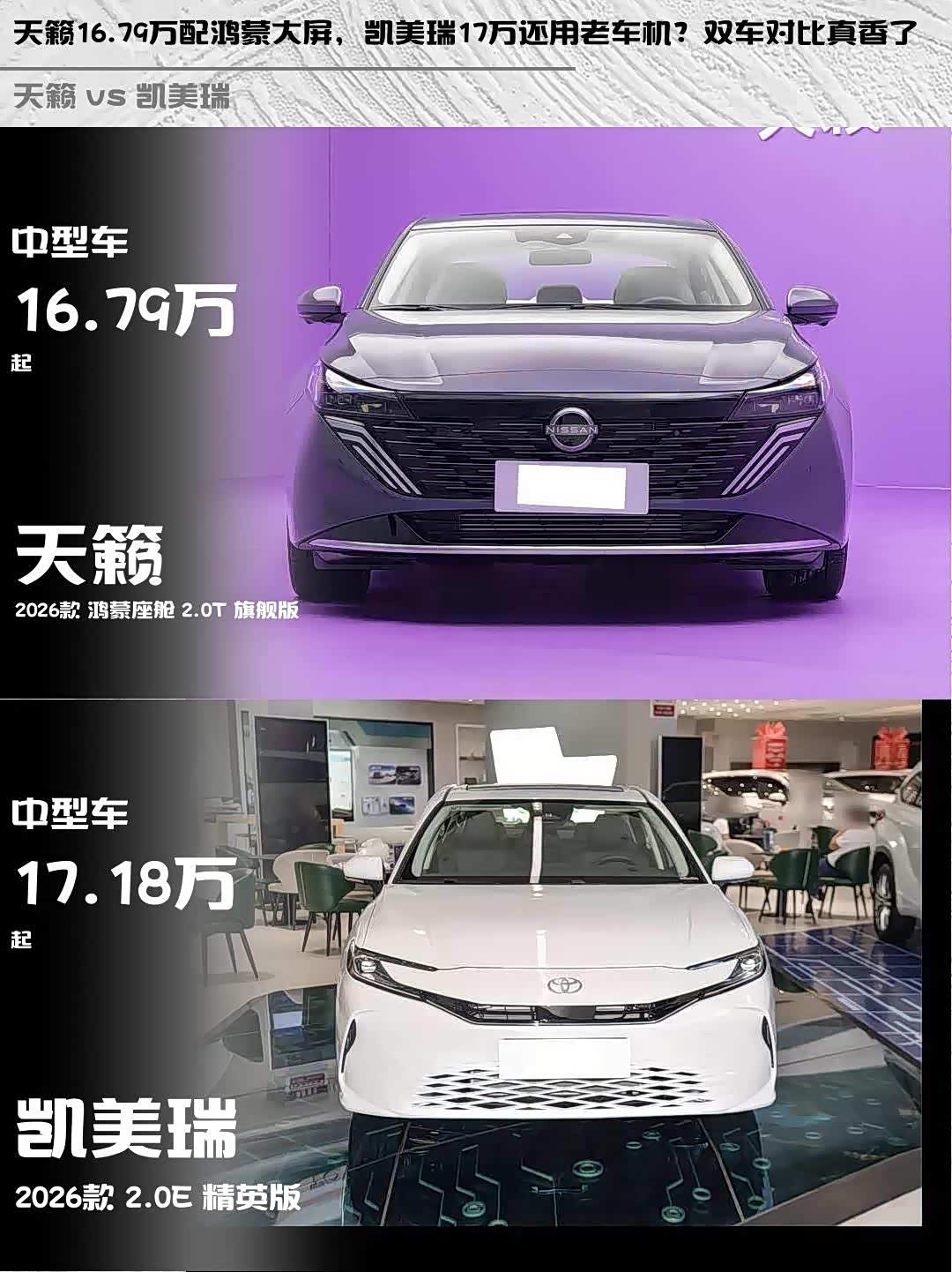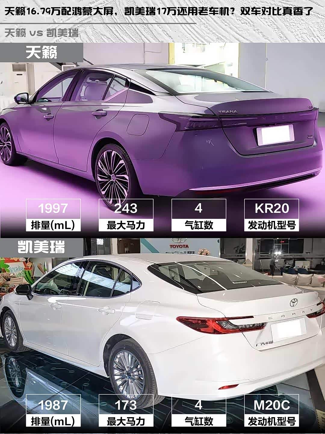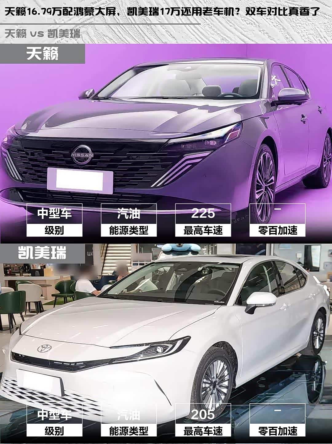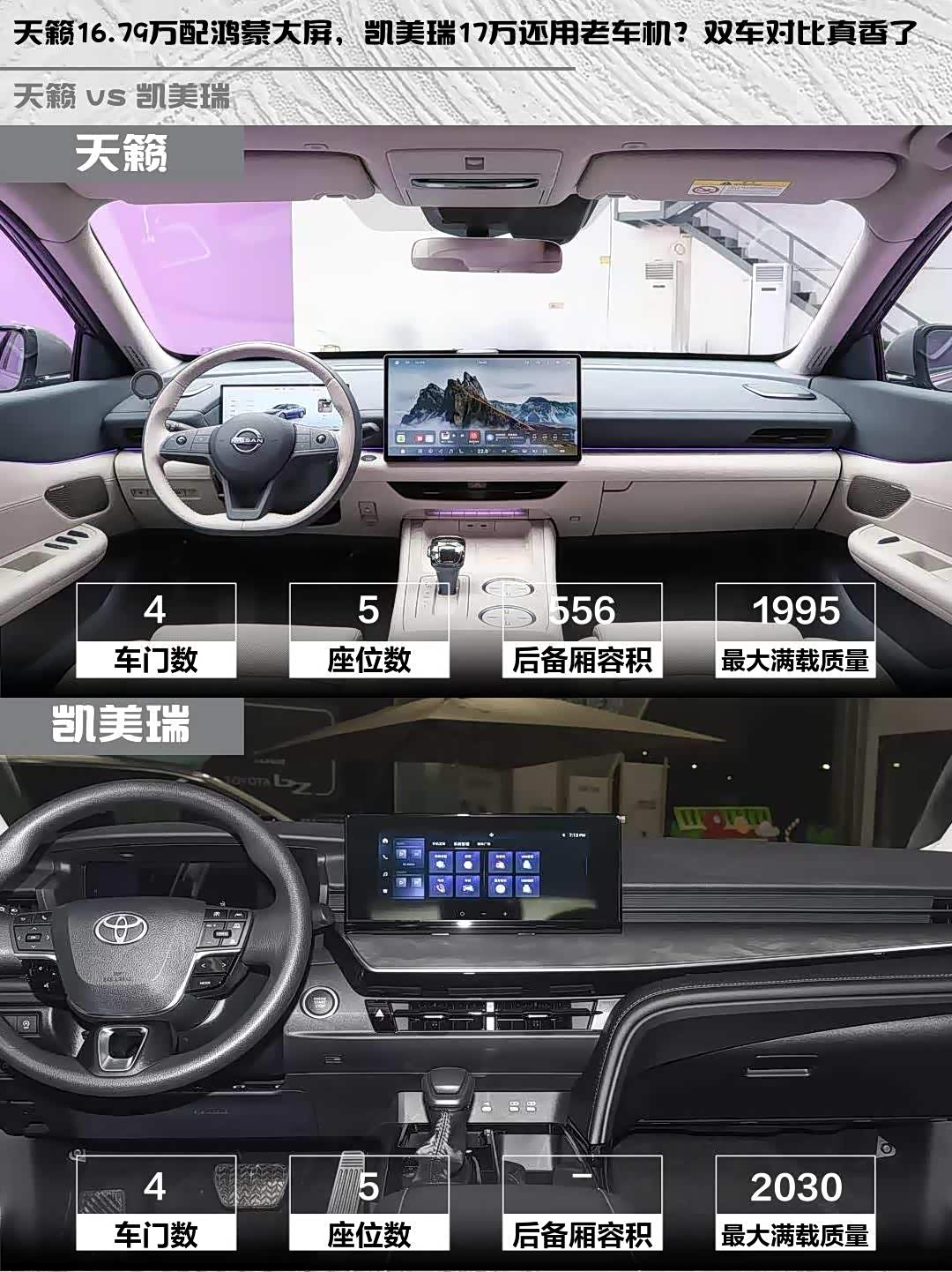 天籁16.79万配鸿蒙大屏,凯美瑞17万还用老车机?双车对比真香了