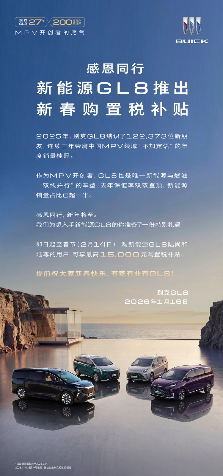 除了新产品,别克在销售政策上也有所动作。例如在2026年初,针对GL8车系推出了包含购置税补贴在内的限时政策,以期在特定时间段内提振销量。