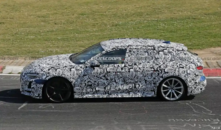 而在侧面,可以看见前轮后的翼子板区域也配备了垂直的导流槽,门把手则还是半隐藏布局,另外可以看见这台车还带有宽体与大尺寸的侧裙。而旅行版的设计和三厢版基本一致,只是车尾布局有所不同,依旧延续了奥迪品牌经典的旅行车线条,相当有辨识度。