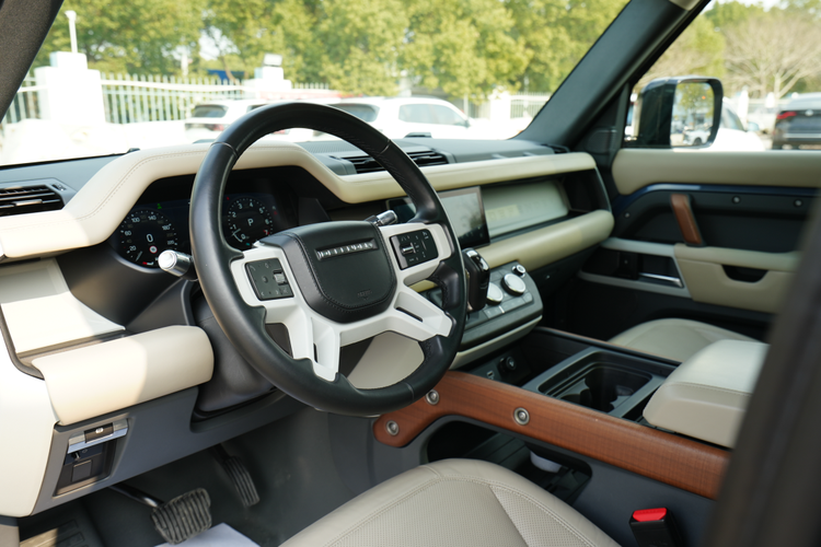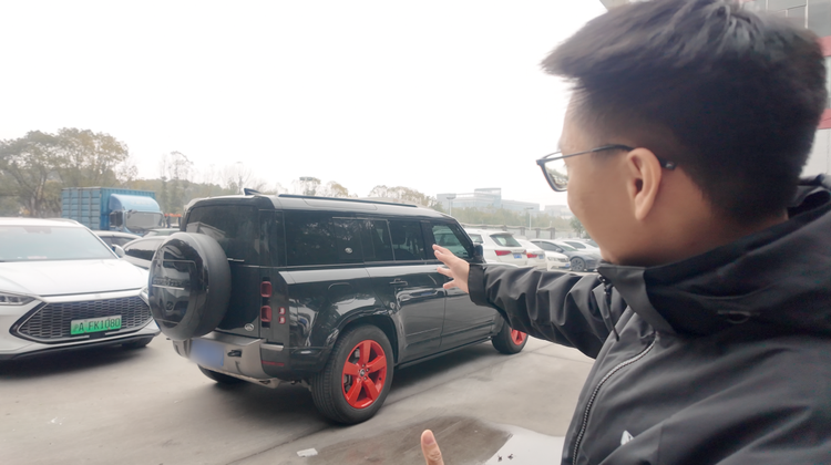 那正巧我们的客户最近下单淘了一台卫士,就是我身后这台。这台车是2021年上牌的卫士110HSE暗黑特别版!目前开了6.9万公里。