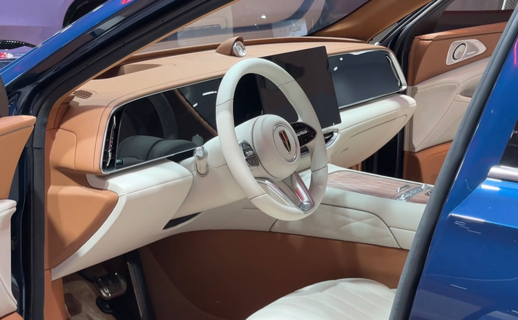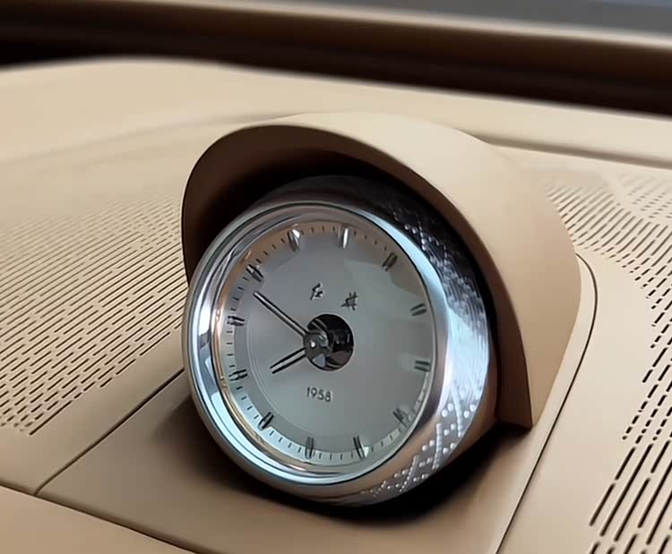 内饰也进行重新设计,“T”形中控台与悬浮式中控大屏为中心,左右两侧各内嵌全液晶仪表屏和副驾娱乐屏,再配合HUD抬头显示,营造出满满的科技氛围。而白/棕双色风格加入大量皮质/麂皮包覆,再配合木纹饰板点缀、璀璨水晶饰件以及环绕式氛围灯,继续强调高级感。同时中控台上方配备了一块圆形石英表,内部有“红旗”、“1958”标识,并采用全新多功能方向盘+电子怀挡。