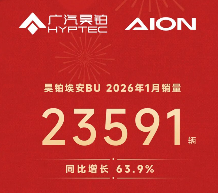 事实上,刚满月的昊铂埃安BU,已向外界印证自我变革的成果:2026年1月,在行业进入传统春节前的销售淡季,昊铂埃安销量23591辆,同比增长63.9%,在寒意凛然的车市里夺得“开门红”,尽显双品牌协同势能。