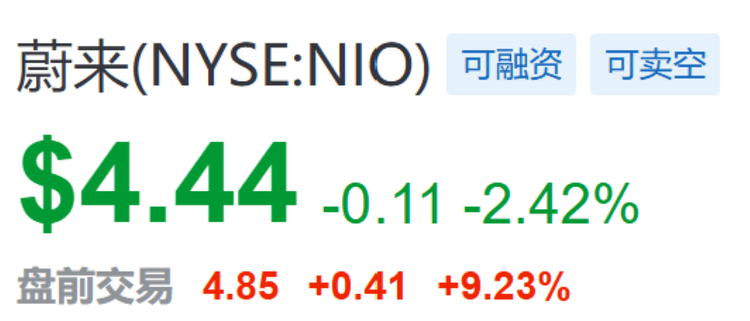 值得注意的是,消息一出蔚来美股盘前大涨,截至发稿时,蔚来美股盘前涨幅近10%。
