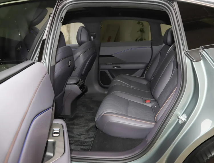 然后舒适度也是非常高级,配有配双腔空悬可以调节软硬和高低,这种低趴轿跑必须要带上高低调节,可以提高通过性。车内配有氛围灯、6种香氛系统,以及空气PM2.5滤芯,包括空气质量监测等,也能时刻保护消费者的身心健康。后排也是零重力座椅布局,所以舒适度非常高,角度也可以多档调节,完全可以找最佳坐姿,毕竟尺寸在那摆着。全景天窗带遮阳帘、纯平地台、后排独立空调,以及车机内置MoLA语音模型,对话更加流畅更有人情味,甚至可以一口气完成所有的指令。内置23个扬声器,以及雅马哈音响和7.1.4声道的调节,配合K歌应用,如同置身于KTV之中。除了前后有双层隔音玻璃之外,整车高达82处都有加厚隔音棉,特别适合音乐发烧友。
