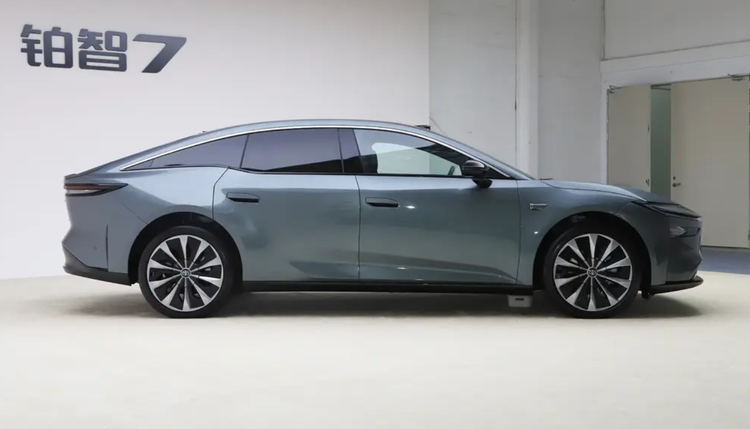 铂智7运动感打造的不错,侧面也是采用跨级风格布局,给人一种很吸睛的感觉。而且它的车身姿态要比丰田凯美瑞更激进,侧面取消了腰线布局转而使用饱满的车身姿态来取代,所以给人一种很厚实很饱满的视觉感觉。配有半隐藏式门把手、后排隐私玻璃、标配就是20英寸的运动轮毂,加上尺寸为5130*1965*1500毫米,轴距为3020毫米,所以车身轮廓就显得十分修长,甚至比丰田凯美瑞还要霸气,同时尺寸参数也是接近阿维塔12,这种大溜背轿跑现在特别符合年轻人的审美。在车漆上也有7种颜色可选,同时尾部采用掀背设计,配合贯穿式的LED尾灯组,点亮后仪式感不错,也带有迎宾灯,为车尾塑造出强烈的科技感。