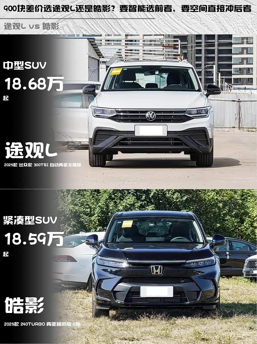 途观龙腾版18.68万 vs 皓影精英版18.59万,差价900元!途观L多出电动尾门、全速巡航、更大轮毂(18寸);皓影优势在动力数据和空间灵活性。保值率本田略高,但大众终端优惠可能更香~