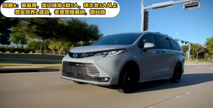 家里最近想换7座车,经常4-5人,甚至5人以上乘坐,自己想买锐界L混动,老婆想买赛那,夫妻分歧挺大,到底怎么选。