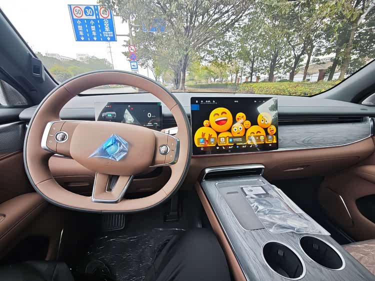 内饰采用简洁的环抱式座舱,配备悬浮式中控大屏和矩形全液晶仪表屏,并将搭载鸿蒙座舱HarmonySpace 5。另外还将采用问界M7同款舱内激光视觉(Limera)技术,搭载华为乾崑智驾ADS 4 Pro,可实现高速/城区领航辅助、泊车辅助等功能。而大量皮质包覆配合木纹饰板点缀,继续强调豪华气息。同时还将配备平底多功能方向盘+电子怀挡、镂空副仪表台+50W手机无线快充等。