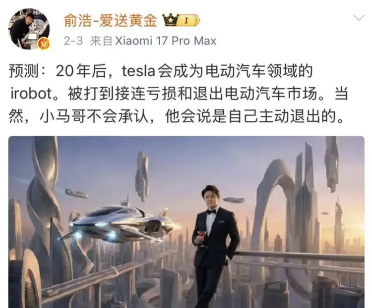 接着就是他公开宣称20年后特斯拉会亏损到退出电动汽车市场,并调侃“小马哥”(马斯克)不会承认失败。从而在网络平台上为自己塑造了一个敢于挑战行业巨头、颠覆传统商业谦逊文化的“狂人”形象。