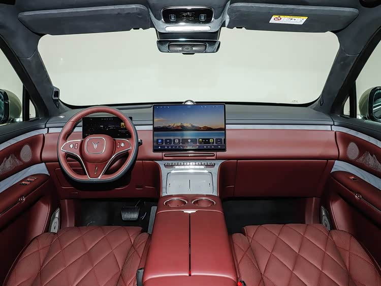 岚图泰山具备大型SUV的定位,车身长宽高分别为5230/2025/1817毫米,轴距为3120毫米,全系采用2+2+2式座椅布局。在此基础上,岚图泰山标配10.25英寸全液晶仪表+16.1英寸中控屏+21.4英寸吸顶式娱乐屏,并且提供二排双3.5英寸控制屏、55英寸AR-HUD等,华为鸿蒙座舱HarmonySpace5也未有缺席。