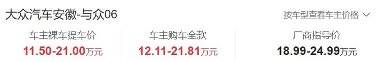 可以看看大众汽车安徽推出的 与众06(参数|询价),该车售价18.99-24.99万元,车主提车价为11.50-21.00万元,标配车型的价格优惠了7.49万元。刚知道这样的优惠力度时,我个人还是很诧异的,觉得不太可能,可是考虑到购车可以叠加报废补贴或置换补贴后,就十分正常了。