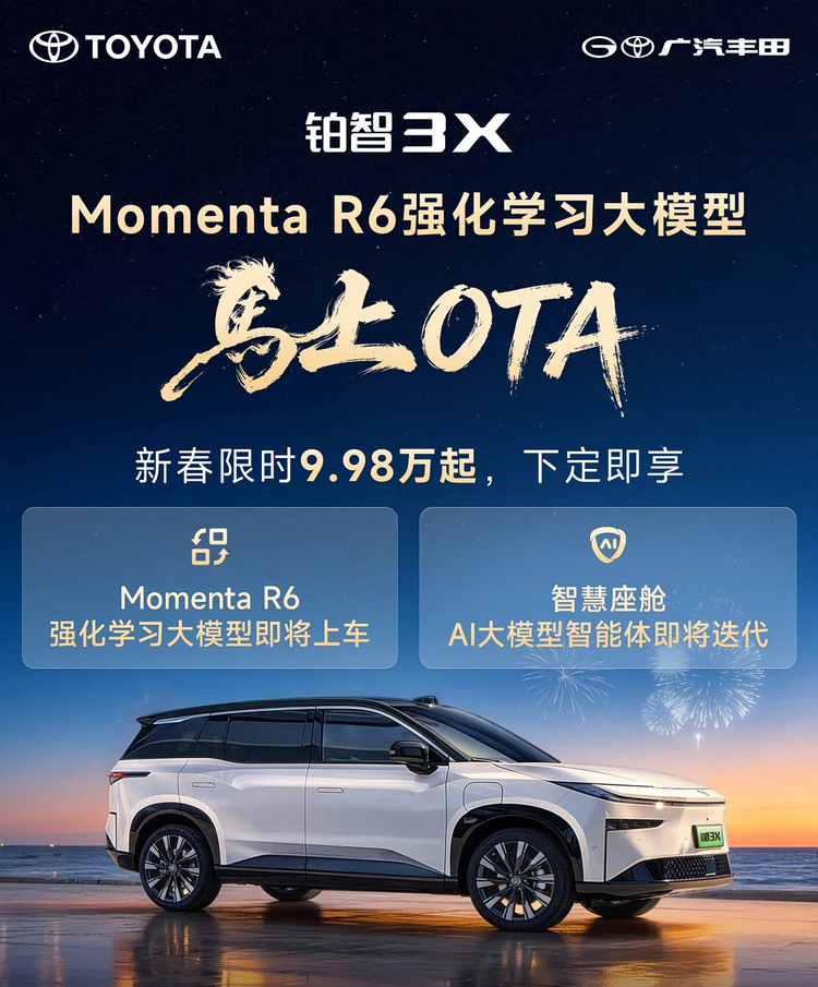 总体而言,铂智3X的新春限时价和OTA升级,反映了汽车产品在价格与功能上的动态调整。价格调整为用户提供了更低的入门门槛,而功能升级则通过软件优化增强了车辆的综合性能。Momenta R6大模型的推送,展示了强化学习在提升驾驶辅助系统智能化水平方面的作用,但其长期效果仍需市场检验。智慧座舱的迭代,则强调了人工智能在车内交互中的融入,通过AI绘画、旅行家等功能,丰富了用户的出行体验。这些变化,虽不具突破性,但体现了渐进式的改进思路,符合当前技术发展的务实趋势。