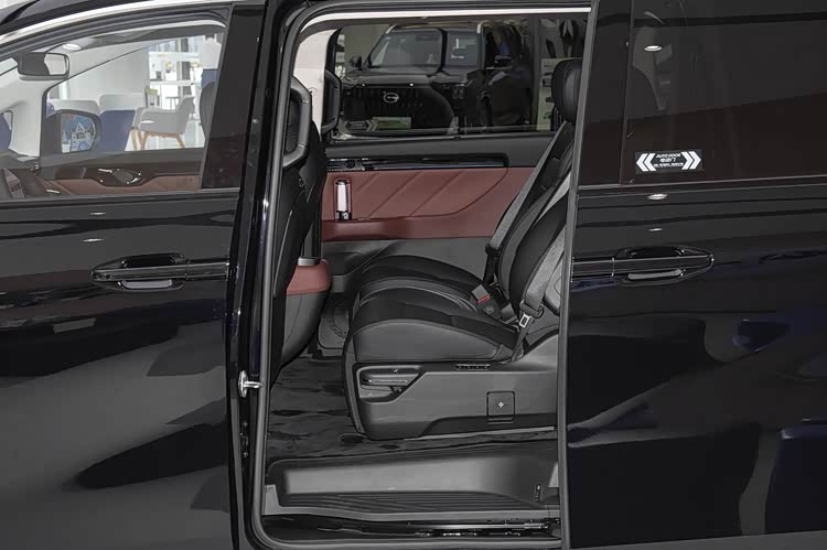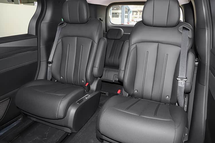 该车采用“2+2+3”七座布局,得益于MPV专属平台底盘布局,拥有395毫米超低地台高度。第二排为航空座椅,坐垫长度530毫米,支持电动调节、加热、通风和按摩功能。