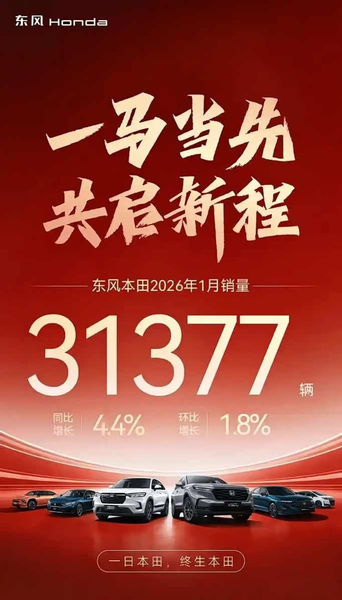 第五是东风本田,1月卖了31377辆,涨了4.4%,表现中规中矩但很稳。核心还是靠CR-V撑场面,这款车不用多说,常年热门SUV,哪怕没公布具体销量,也能猜到是它贡献最大。