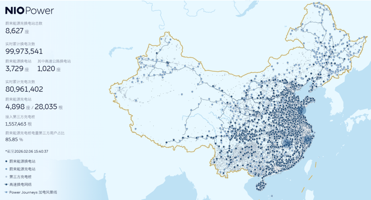 截止2026年2月6日,蔚来累计换电次数接近1亿次(来源:蔚来官网)