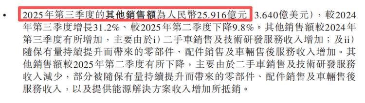 除此之外,蔚来的其他业务正在成为新的增长极和利润来源,三季度报显示,蔚来的其他销售收入达到25.9亿元,同比增长31.2%,这部分收入主要包括二手车销售、技术服务、零配件及售后服务等。蔚来生态体系已经让各业务板块之间产生协同效应,这种协同创造了“1+1>2”的价值。