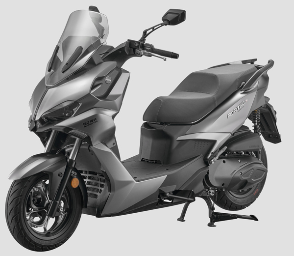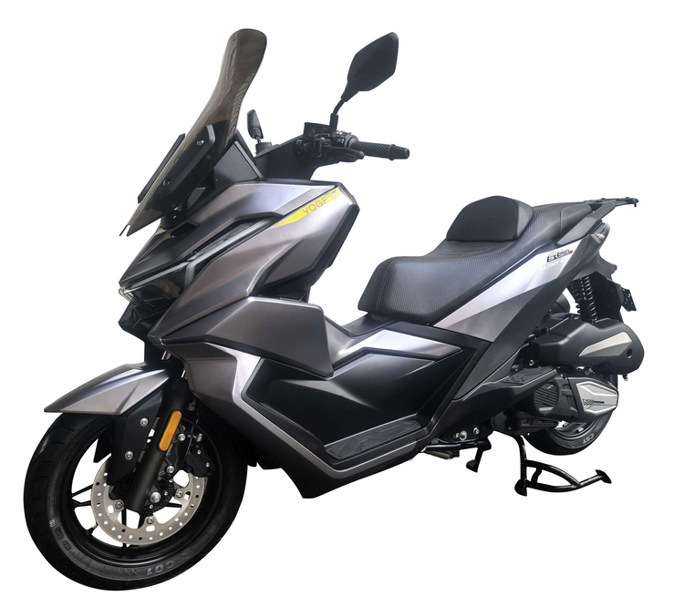 但它所搭载的动力总成和九妹基本相同,其实际排量278cc,最大功率19KW,最高设计时速127km/h。整车尺寸也八九不离十,轴距都是1530mm,并采用了前14后13寸的轮毂,至于具体配置能看到的有透镜大灯、前置后视镜、单碟盘、双活塞卡钳、ABS和TCS。