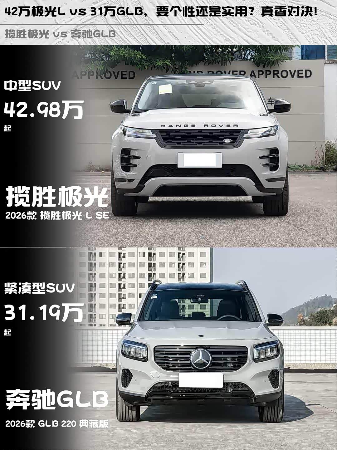 最近后台好多兄弟在问2026款 揽胜极光(参数|询价)L SE和奔驰GLB 220典藏版怎么选?作为深度体验过两台车的玩家,今天直接上干货对比!🔥