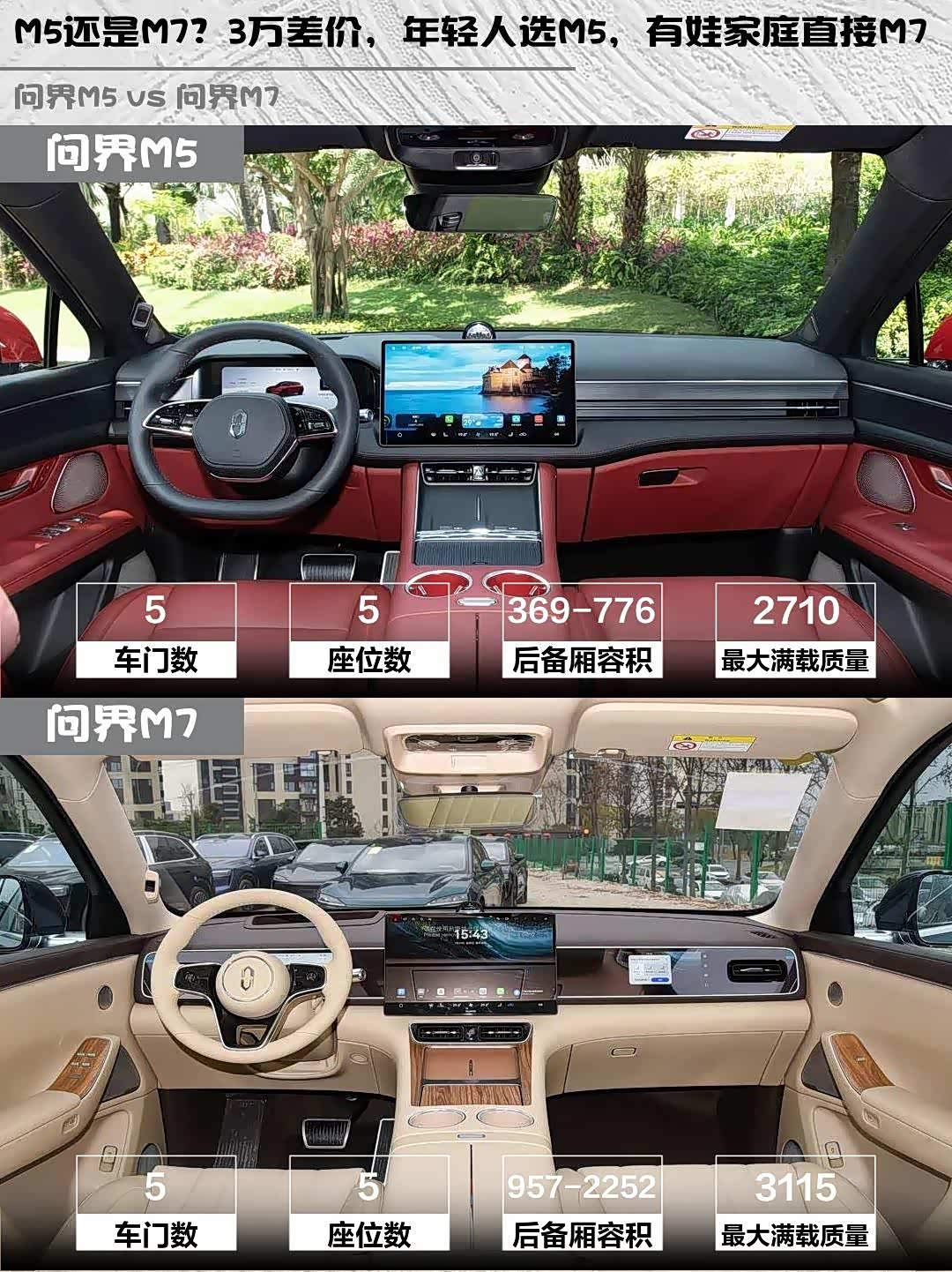 最近在纠结 问界M5(参数|询价)和M7的朋友看过来!作为深度体验过两车的车主,今天就从实际使用角度给大家做个超详细对比🔥