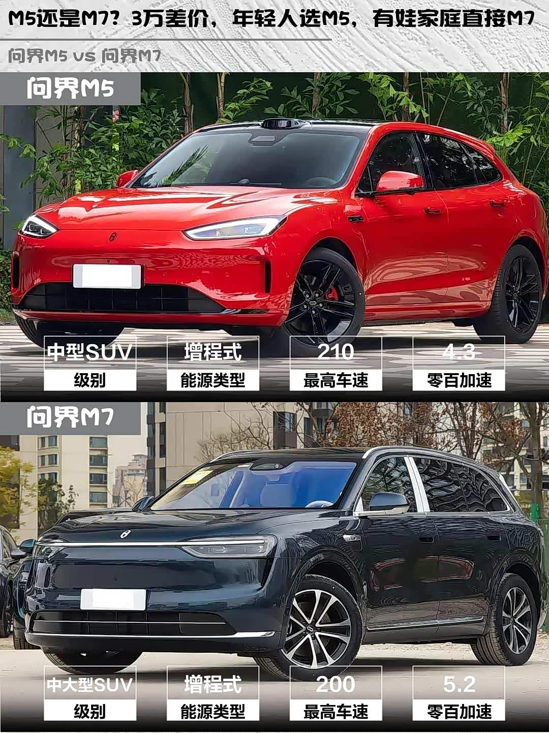 个人建议:单身或小两口选M5,有娃家庭闭眼入M7。两款都是25万级最能打的增程SUV,关键看你的使用场景~