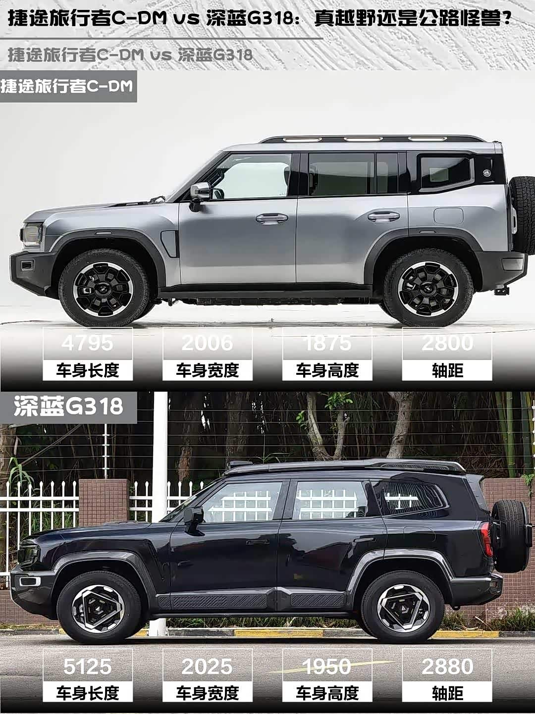最后说个冷知识:捷途的背挂备胎自带夜间小灯,深蓝的车顶射灯是合法改装件,夜穿时都是氛围组担当✨ 你们更倾向哪种风格?