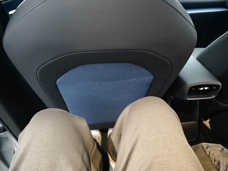 取车时签署的单据,我本想放入手套箱,按下屏幕里的手套箱开启按键,打开的却是大屏下方的一小块储物格——四舍五入,这玩意根本没有一个合理的手套箱;我打开后门,想把文件夹放进座椅靠背后的书报夹,却只看到大面积的蓝色织物,显然它也没有配备;后门上的储物格很窄,没法放水,大面积的文件夹显然也插不进去,前排门板空间倒是很规整,但重要文件放在门上想想都不是很安心。
