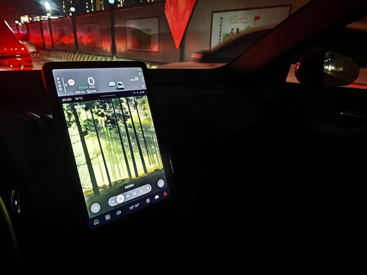 刚拿到车时,我一边联系下午一同出行的好友,一边研究着这台车的车机功能,很快便感到不对劲。这套车机的设计感远大于实用性和稳定性,以至于一直到还车我都没搞明白一些功能,甚至分不清楚氛围灯究竟是坏了还是我不会用——因为我找到了氛围灯的设置页面,但不管怎么点,车内依旧是一片漆黑。