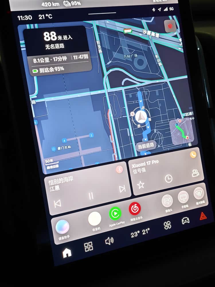 车机导航倒是比较清晰易懂,但在使用过程中出现了一次定位偏移,带我走错了路。此外,在地库里也完全失去了信号,没法执行导航任务,开出地库后才恢复正常。