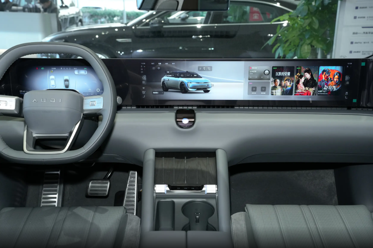 坐进奥迪E5 Sportback车里,第一眼就被那块59英寸超感广域屏吸住了!不是单块屏拼凑的,是把全液晶仪表、中控屏、副驾娱乐屏,还有两侧电子外后视镜的显示区全无缝连一起了,整个中控台一眼望过去超震撼,视觉感直接拉满。而且这套屏一点不徒有其表,背后是高通骁龙8295车规芯片,点啥都丝滑不卡顿,操作起来特顺手。奥迪自己深度优化的AUDI OS系统也特好上手,交互逻辑特清晰,车载微信、抖音这些咱们日常用的APP都有,本土化做得超到位。