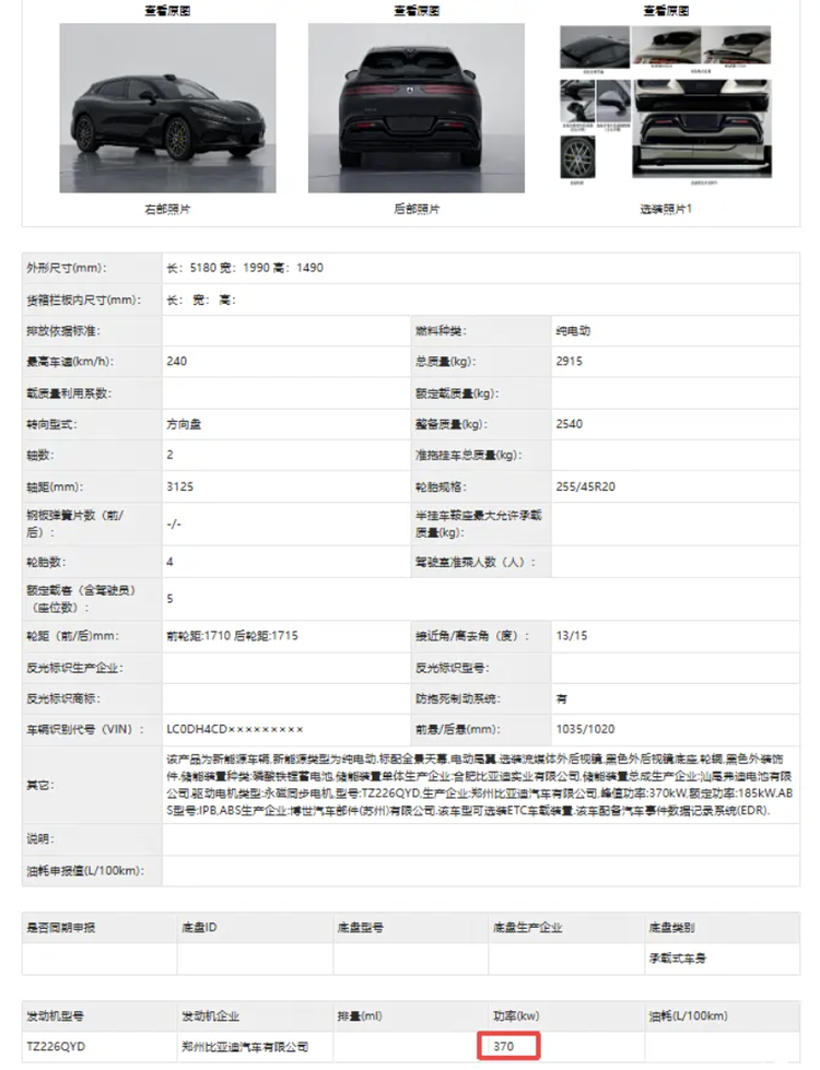 其车身尺寸为5195(5180)/1990/1480(1500)毫米,轴距为3125毫米。根据此前的工信部申报信息,Z9GT在动力参数上也有所更新。纯电版的三电机系统综合功率得到提升,三个电机的功率分别为230千瓦、310千瓦和310千瓦;同时官方还申报了一款最大功率370千瓦的单电机版本,有望进一步降低入门门槛。