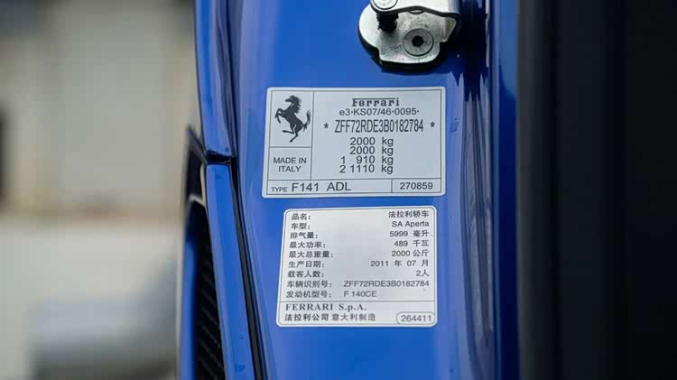 SA Aperta车身线条沿袭自599车型,却凭借大倾角前挡风玻璃、集成空气动力学尾翼与防滚架的流畅后舱盖,成为独一无二的存在,风阻系数低至0.31,在敞篷状态下仍能保持出色的高速稳定性。更令人惊叹的是,这款敞篷超跑的核心机械部件——包括发动机、变速箱和排气系统,并非源自599 GTB,而是来自599 GTO。这台前置6.0升V12发动机可输出661马力、620牛·米扭矩,匹配6速半自动变速箱,在法拉利菲奥拉诺测试赛道的圈速竟比备受赞誉的Enzo还快整整一秒,延续了60年代法拉利经典的前置大排量GT跑车传统,实现了舒适巡航与极致性能的平衡。
