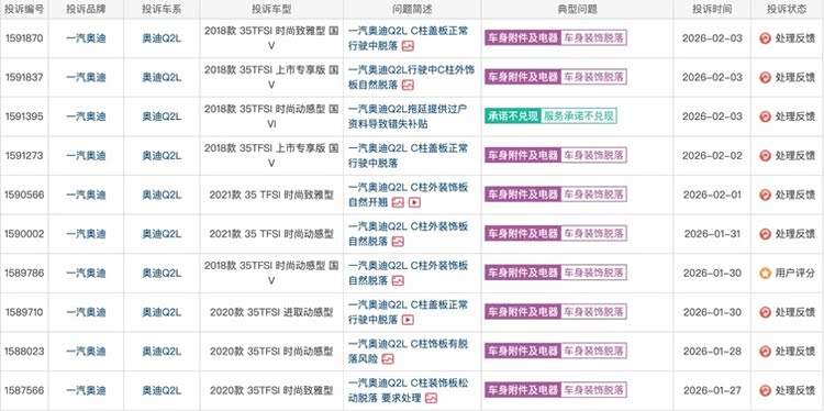 从产品角度看,Q2L作为奥迪的入门SUV,2018年国产上市后凭借品牌和设计吸引了不少消费者,2021年年销量曾接近4.9万辆。但材料耐久性缺陷无疑影响了用户体验,甚至构成安全隐患。