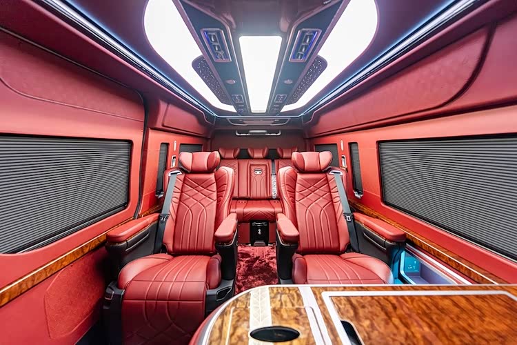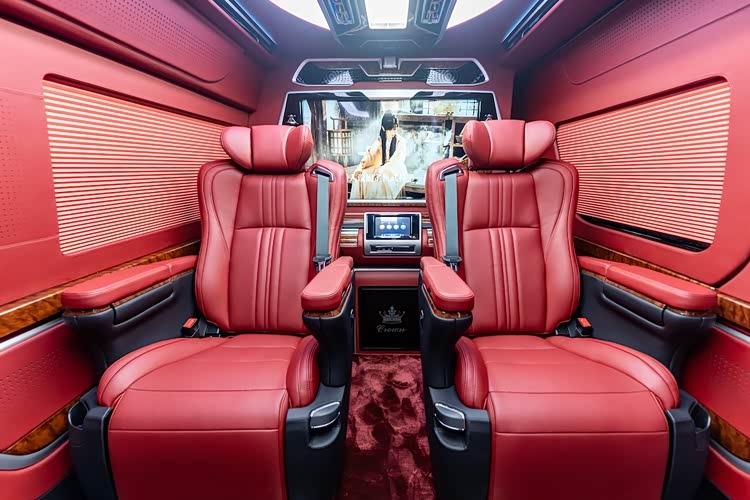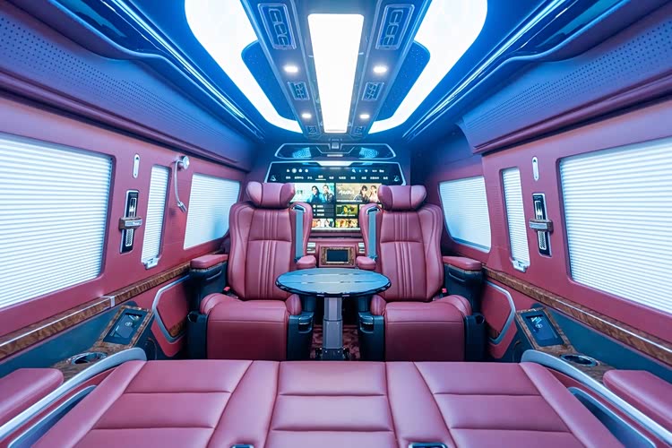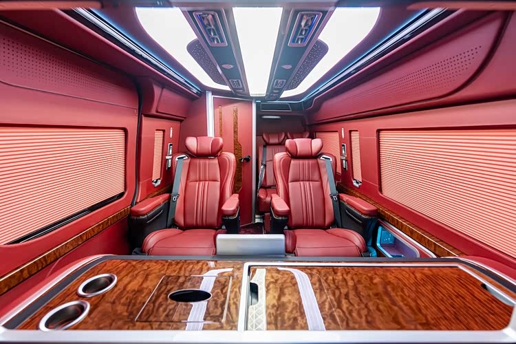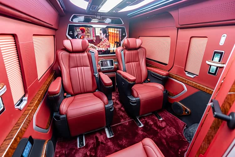 北京东方众威丰田海狮4S店总店的4座全隔断至尊版(68万-95万),堪称移动总裁办公室的终极形态。车身长达5980mm,轴距3860mm,通过电动升降雾化玻璃全隔断将驾驶舱与后舱完全分离,营造出静谧私密的独立空间,隔断中央嵌入55英寸4K智能升降电视,支持会议资料投屏与语音控制,商务洽谈时升屏保障机密,休憩时刻降屏畅享娱乐。后舱仅设两张顶级航空座椅,采用进口Nappa真皮双线缝制,搭配爱马仕橙、锗石棕等奢华配色,支持16向电动调节、360°旋转,以及通风、加热、气动按摩三重buff,高密度记忆棉床垫厚度达12cm,有效分散身体压力。座椅中间配置乌木样式桃木茶台,集成电动出水装置与无线充电模块,搭配220V电源接口与英国之宝环绕音响,无论是签字会谈、视频会议还是临时休憩,都能让总裁在路途中高效办公、舒适放松,全车采用降噪隔音材料与空气悬挂系统,即便高速行驶也能保持图书馆级静谧性。