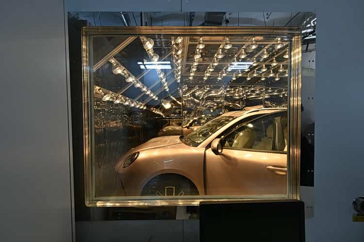 同时首次对外公开的还有头几年建成的智能交互实验室,投资超1200万元,其最大的亮点在于完全模拟了车辆驾驶时的环境状态,坐在主驾驶可以根据周边的各种投影、显示屏等感知实际驾驶时的感受,同时车辆可调节轴距、方向盘、刹车踏板、顶高等数据,可以把它理解为一个功能高端的模拟器,在研发阶段可以省去很多麻烦,调整好的数据可以直接用在实车成型的过程中。