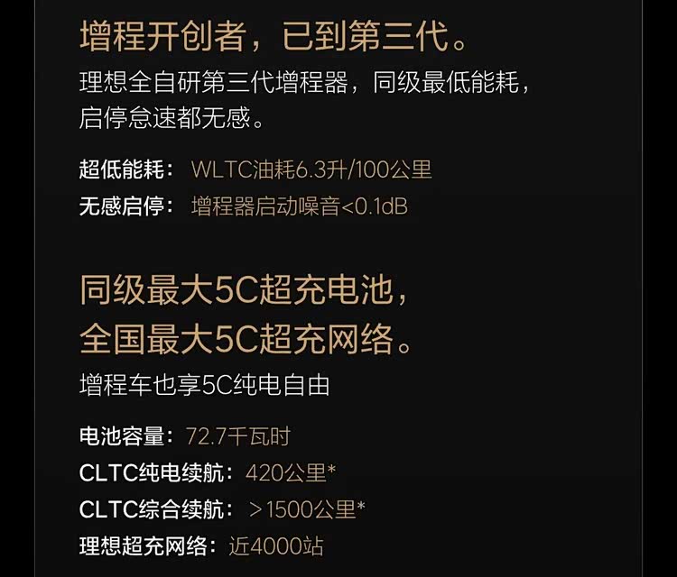 根据理想给出的数据,理想L9 Livis在WLTC工况下百公里油耗仅6.3升,增程器启动噪音低于0.1dB。